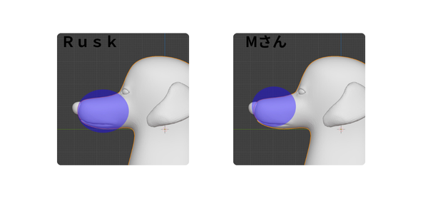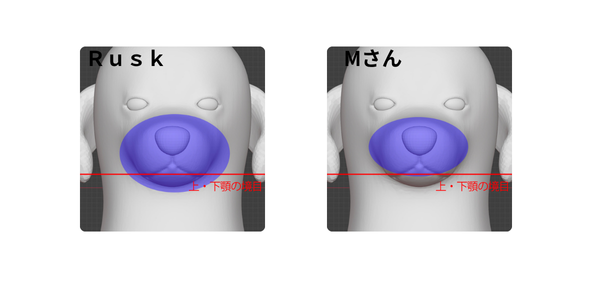 Ruskのマズルは、上顎と下顎を合わせて作っているのに対し、Mさんのマズルは、上顎だけで出来ています