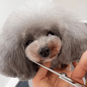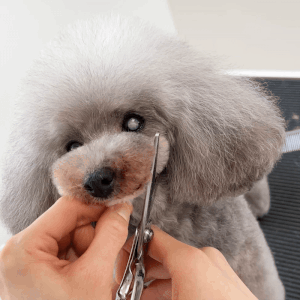 首を傾けたり、のぞき込んでマズルの奥の毛を切ってしまっている